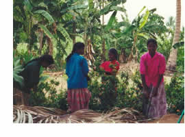die Landbevölkerung lebt in Großfamilien, wo bei der Arbeit